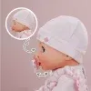 - Includes: 1 x doll, 1 x pink romper, 1 x cap, 1 x bottle, 1 x dummy, 1 x cuddle blanket with teething ring, 1 x charm, 1 x baby album with sticker sheet