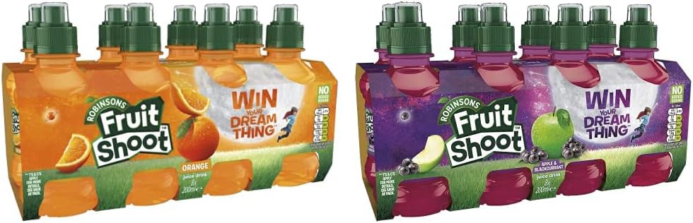 - Robinsons Fruit Shoot Fruit Juice, Orange, 8 x 200ml & Fruit Shoot Apple and Blackcurrant, 8 x 200ml
