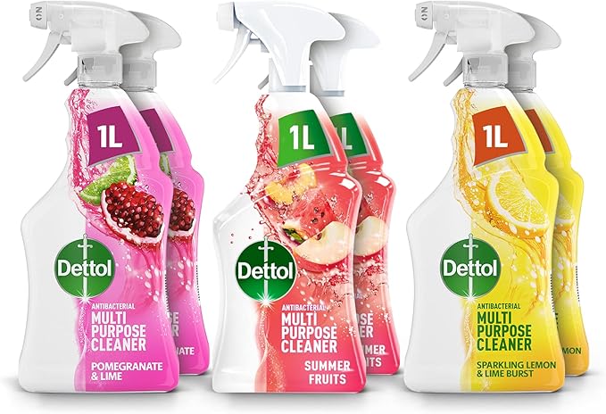 🦊Dettol Antibacterial Multipurpose Cleaner Multipack, Pomegranate & Lime, Summer Fruits, Sparkling Lemon Burst, 1L Each, Pack of 6,-AUTO WIN