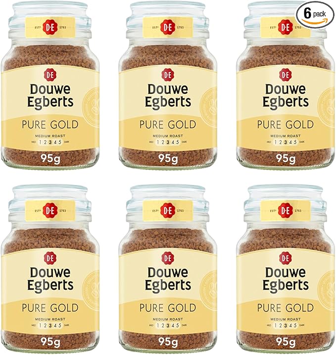 🦊Douwe Egberts Pure Gold Medium Roast Instant Coffee 95g (Pack of 6 Jars, Total 570g)-AUTO WIN