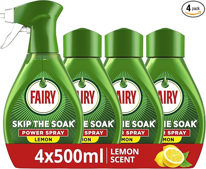 🦊Fairy Skip the Soak Dish Spray Kit Lemon, Trigger + 4x500ml Refill. 100% Grease Removal for Dishes & Surfaces.-AUTO WIN