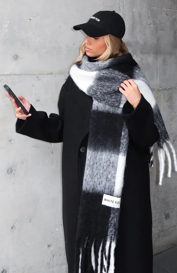 🦊WHITE FOX WINTER WARMTH OVERSIZED SCARF BLACK AND WHITE-AUTO WIN 22/09