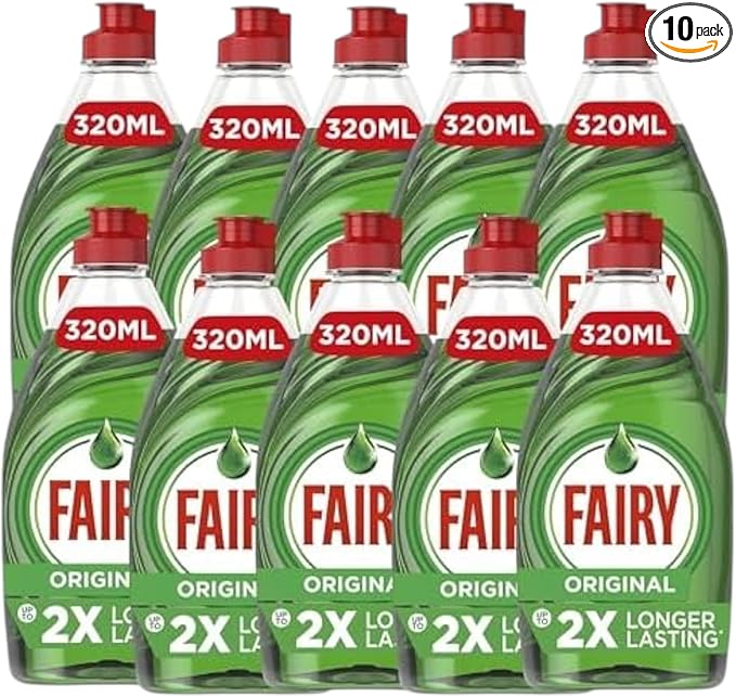 (10 x 320ml) Fairy Original Washing Up Liquid Green with Liftaction | Dishes Grease Cleaner-AUTO WIN 20/12