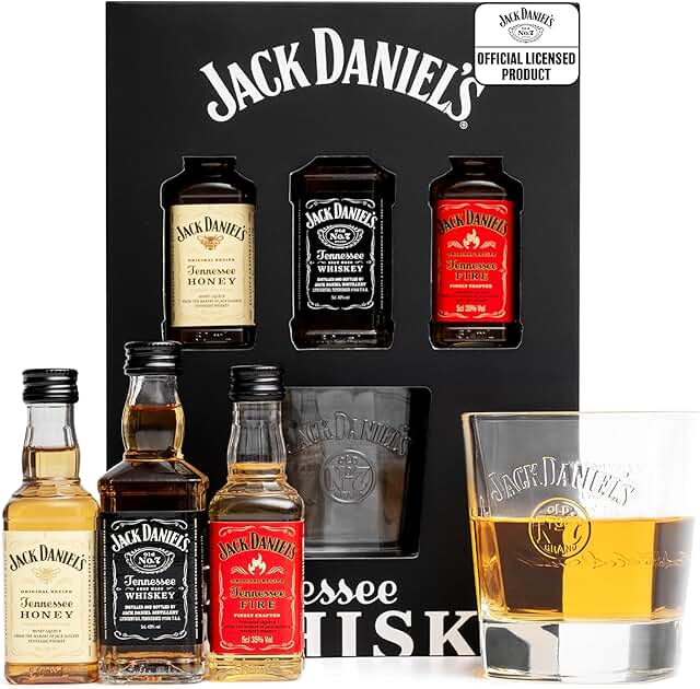 2 WINNERS Jack Daniels Gift Set – Jack Daniels Whiskey 3x 5cl Honey, Fire, JD Whisky Old No7 Mini Alcohol Bottles, JD Tennessee Whiskey Glass -AUTO WIN 17/10