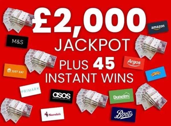Even if you don’t manage to secure an instant win on this occasion, you are still entered in with all your entries to our £2,000 TAX FREE CASH MAIN PRIZE( MAIN PRIZE AUTO WIN- NO LIVE DRAW