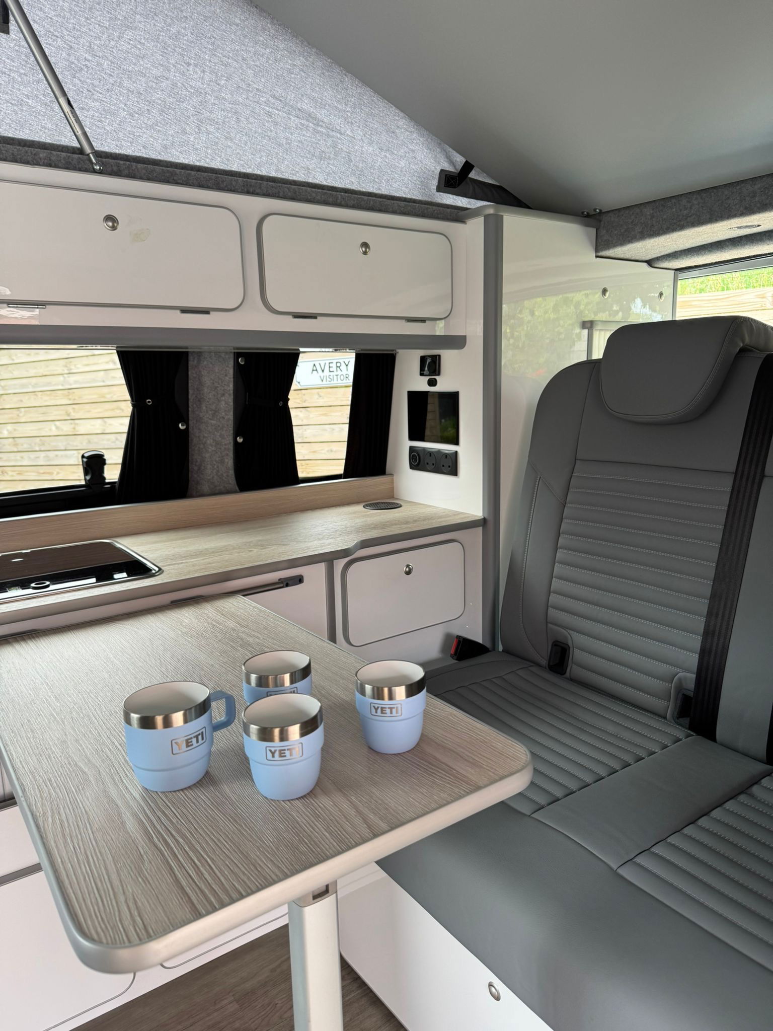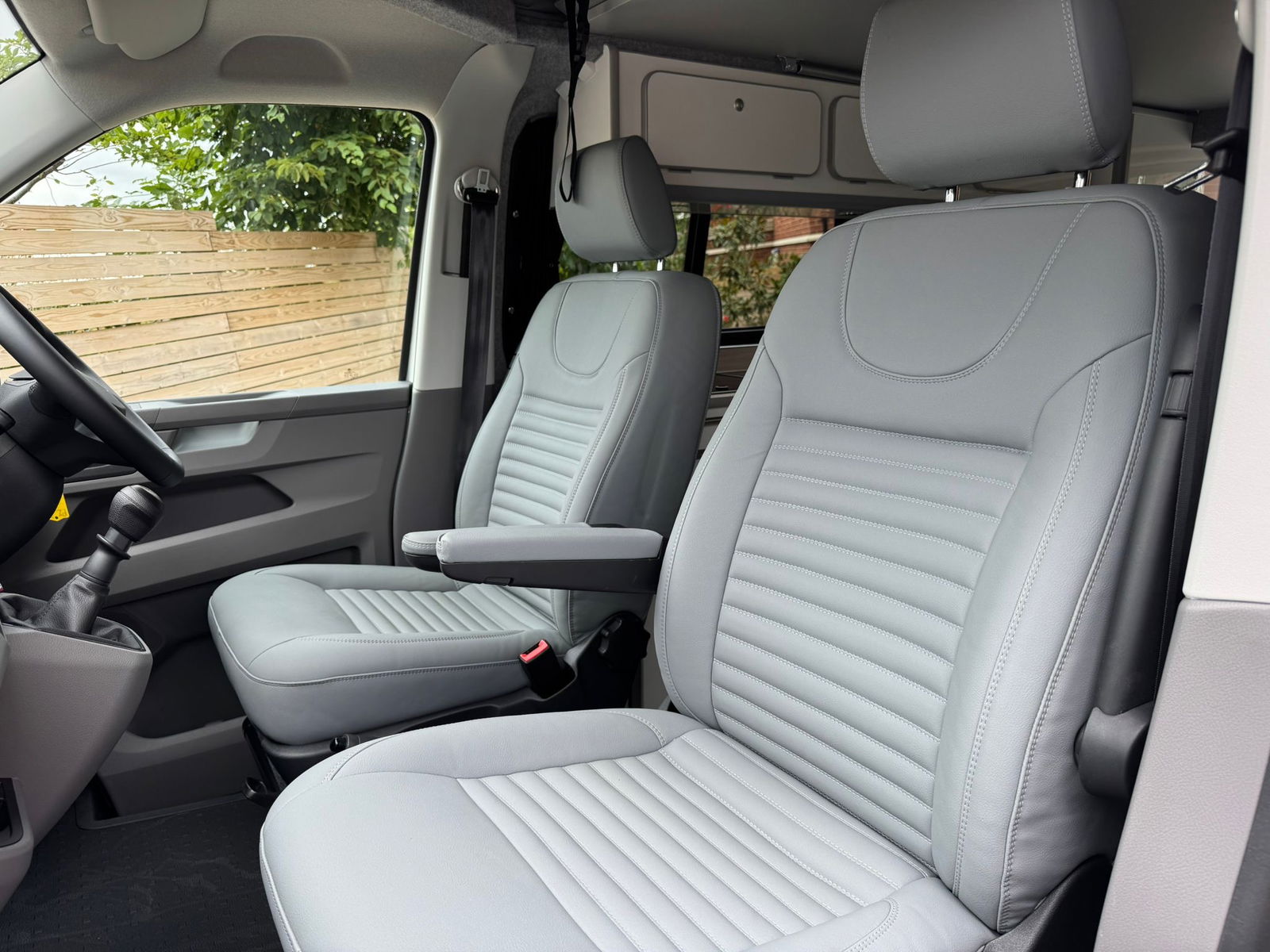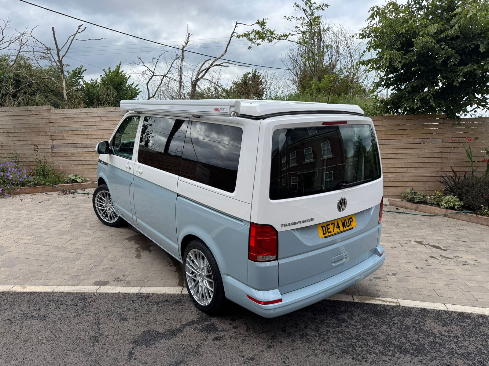 2024 Transporter Finished in Stunning CANDY WHITE/FLANNEL GREY Paintwork, with the superb Camper King St Tropez interior. Heated Rear Screen and Wiper, Diesel Heater, Deluxe Upholstery, Wireless Charging Pad, 20L integrated Water Tank, Gas hob, Sink with running water, 4 Berth, Pop top roof, LED lighting, Leisure/Auxiliary battery, Fridge, 4 Belted seats, Isofix on rear seats, DAB Radio and Touchscreen, Bluetooth, Apple Car Play/Android Auto/Mirror Link, Air conditioning, Cruise Control, Rear Parking Sensors, Multifunction Steering Wheel. Electrically adjustable door mirrors, Electric front windows, 2 Keys.  all newly converted by Camper King