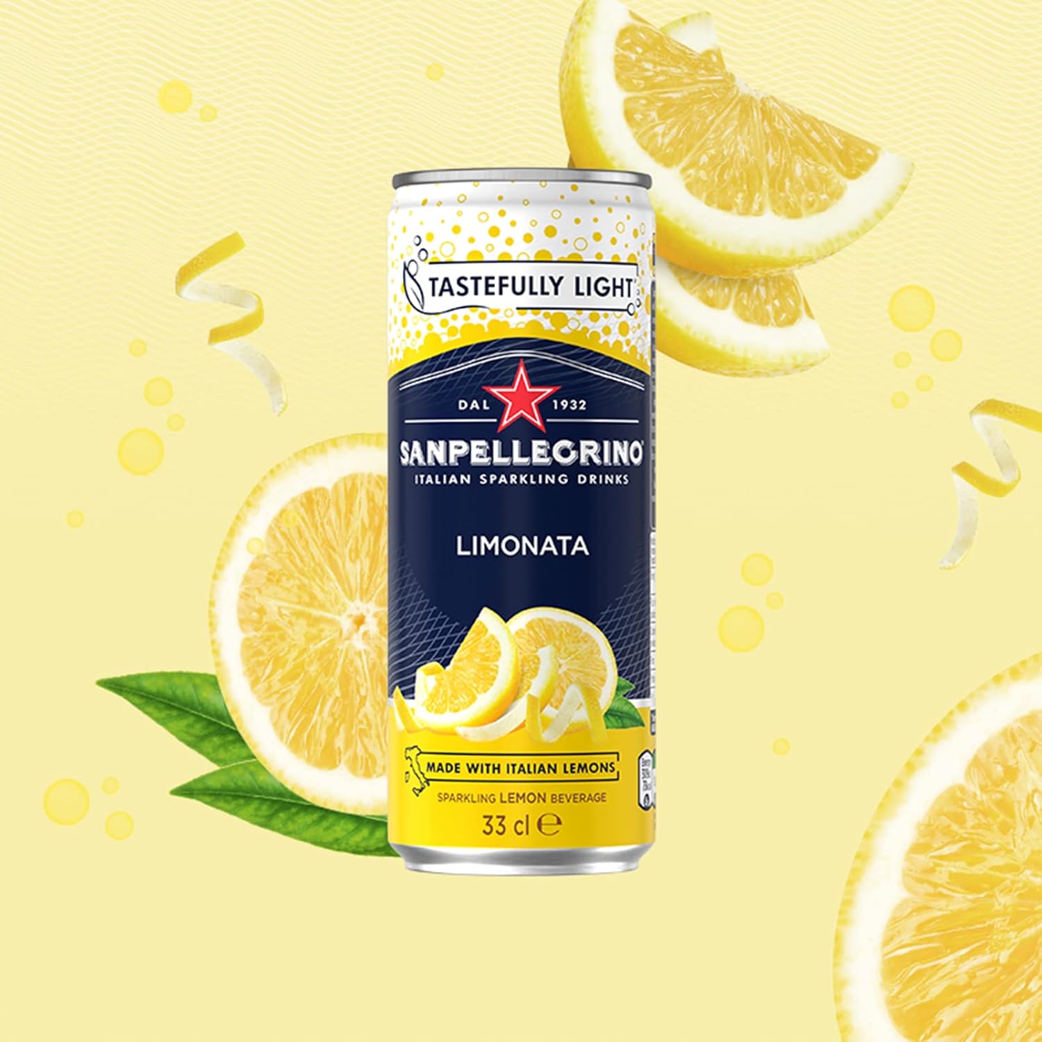 2×12 San Pellegrino Italian Sparkling Drinks Tastefully Light Sparkling Lemon Canned Soft Drink 12 x 330ml | 73k Cals per Can (Pack of 2) 27/11