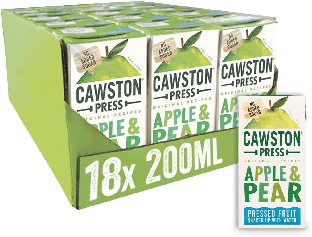 3 WINNERS CAWSTON PRESS FRUIT WATER KIDS DRINK | PRESSED APPLE & PEAR FLAVOURED WATER | 200ML X 18 PACK PEAR & APPLE JUICE CARTONS | SCHOOL APPROVED – NO ADDED SUGAR – VEGAN | IDEAL FOR KIDS LUNCHBOX