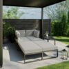 The set includes two 2-seater sofas, two 2-seater stools, and a matching steel coffee table, providing ample seating and a stylish surface for your outdoor gatherings. The steel frames guarantee durability, ensuring longevity in various weather conditions.