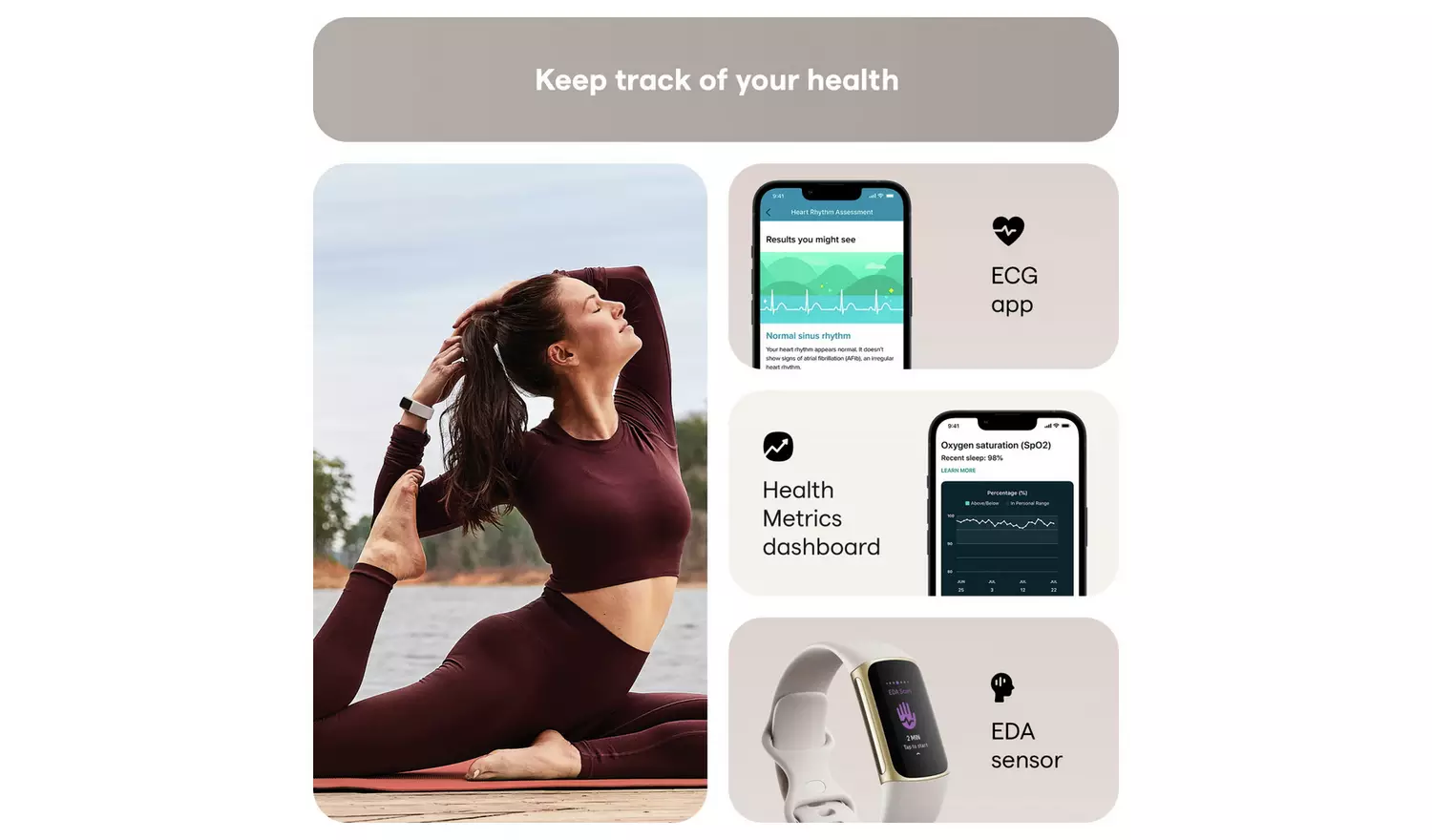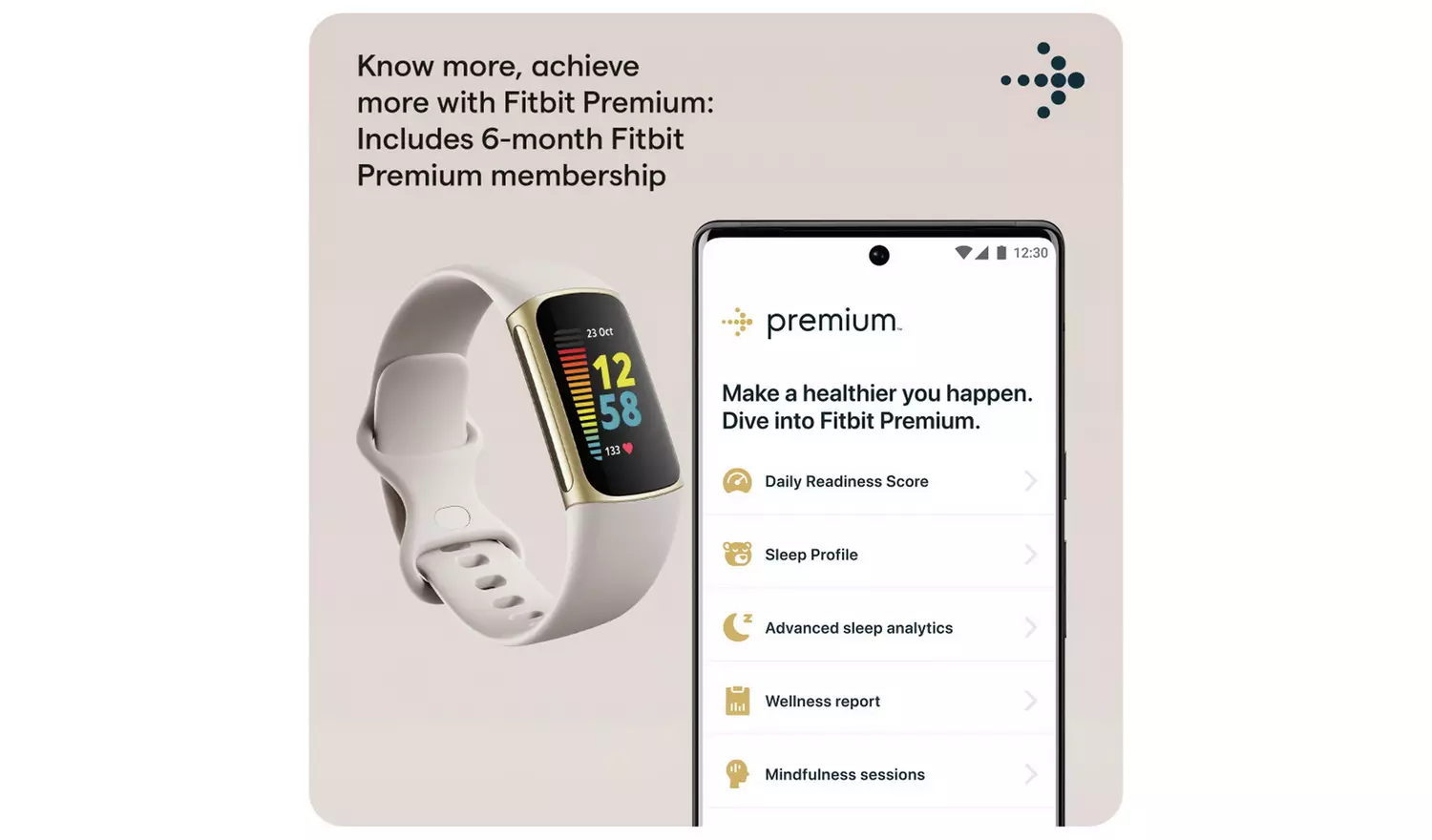 Redefine routine with Fitbit Charge 5 + Premium—our most advanced fitness and health tracker that shows you whether you are ready to work out or should prioritise recovery.