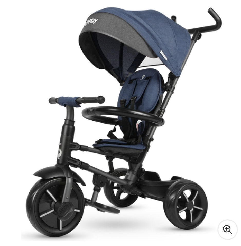 Style meets function in this transforming smart trike. The Q Play Rito Star Folding Trike grows with your child from 10 months to 36 months and folds flat in seconds for portability. The reclining high-back padded seat features a 5-point harness and detachable safety surround that can be removed as your child grows. This smart trike meets stroller standards with a dual brake system and handlebar clutch.