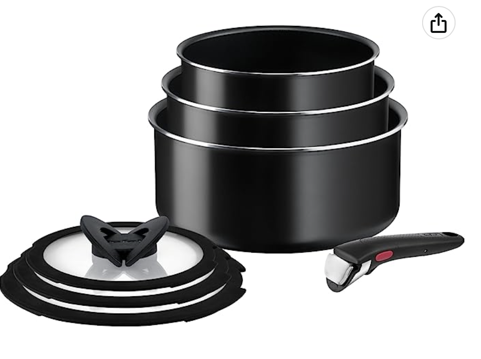 AFTERNOON AUTO WIN – Tefal Ingenio Easy ON Try-Me Pan Set, 7 Pieces, Stackable, Removable Handle, Space Saving, Non-Stick, Black, L1599602 – 05/08