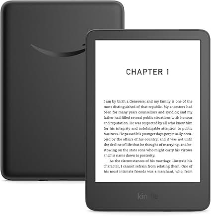 Amazon Kindle (newest gen) – Lightest and most compact Kindle with glare-free display, faster page turns, adjustable front light and long battery life – 16 GB – With Ads – Black