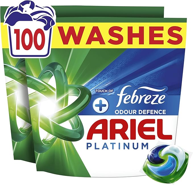 - BRRRILLIANT CLEAN + TOUCH OF FEBREZE ODOUR DEFENSE: Ariel Platinum PODS washing capsules remove even 7-day old sweat odours