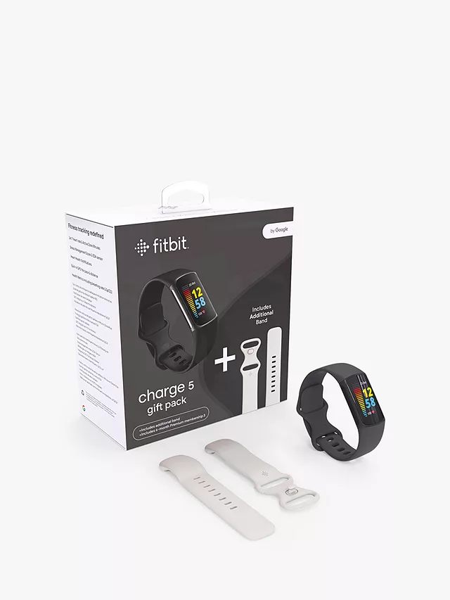 AUTO WIN-Fitbit Charge 5 Health and Fitness Tracker, Black, Gift Pack with Additional Lunar White Large Band