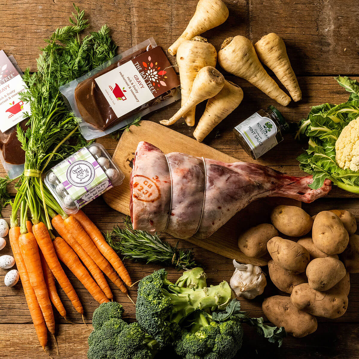 This box contains everything that you need for a succulent leg of lamb roast, for up to 6 people, in the comfort of your own home… including a box of Rococo Chocolate Eggs for a sweet treat!