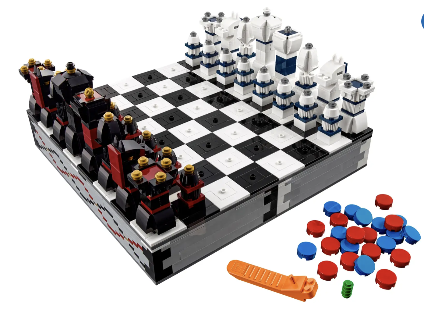 • Includes a buildable chessboard and buildable playing pieces.