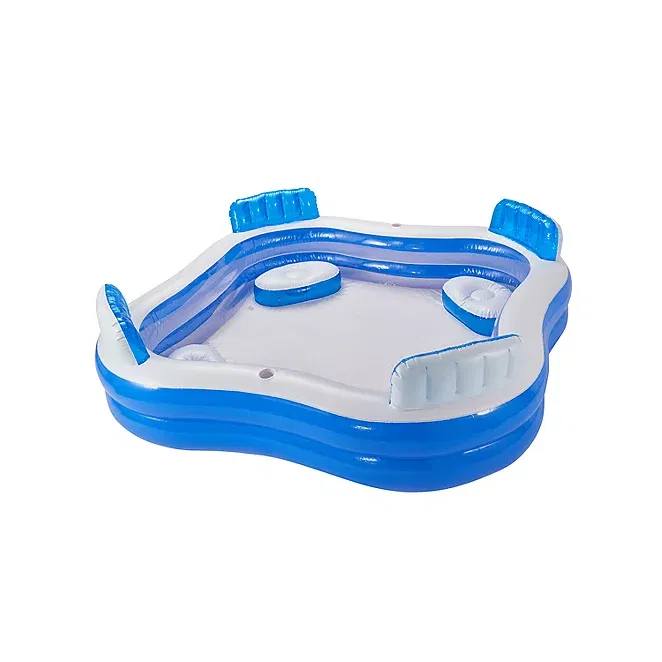 This Family Lounge Pool includes 4 inflatable seats and 4 inflatable headrests for ultimate comfort, as well as 2 built in cup holders to make relaxing even easier.