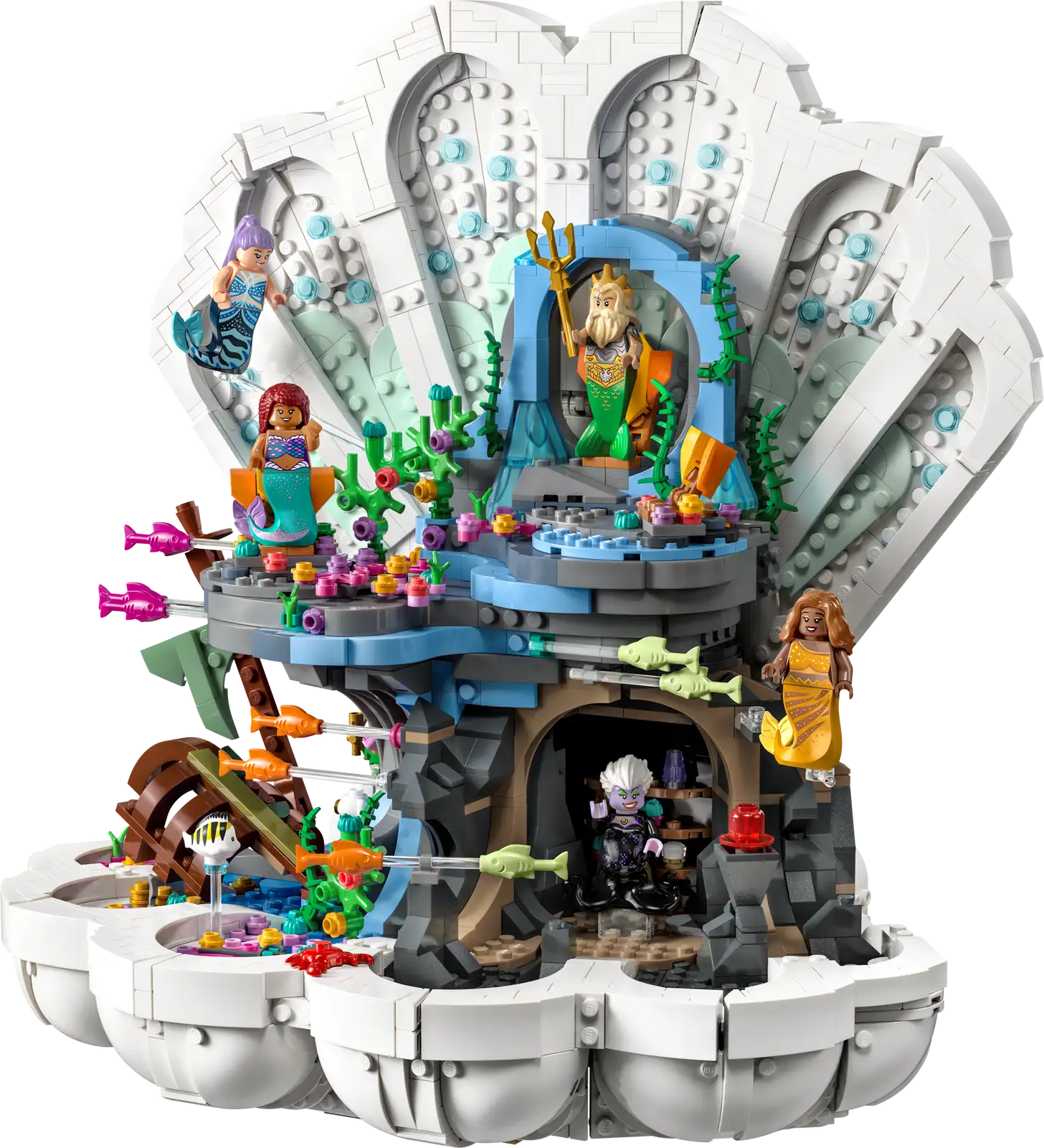 Share your love of Disney’s The Little Mermaid with this LEGO® | Disney The Little Mermaid Royal Clam Shell (43225) set. Based on the upcoming live-action The Little Mermaid film, this detailed, 1,808-piece set showcases 3 key areas: King Triton’s throne rock, Ariel’s hideout filled with treasures and Ursula’s mysterious cave – all in a unique shell designed for display.