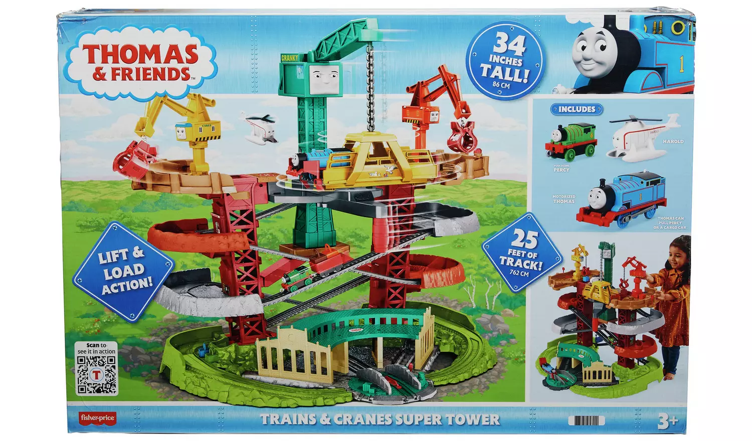The Thomas & Friends Trains & Cranes Super Tower train and track set, from Fisher-Price, brings all the exciting action from the Thomas & Friends TV show to life! Standing approximately 76cm tall, this multi-level train track set is perfect for any Thomas & Friends fan! It also features a spinning turntable, crane toys and track pieces for train engines to zip around on. It’s all in the hands of young conductors, who can use handles and switches to decide what happens. Also compatible with other Thomas & Friends track (sold separately).