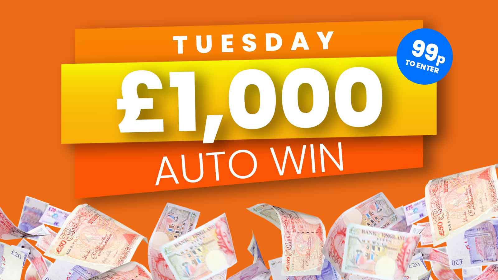 AUTO WIN – WIN £1000 TUESDAY CASH – 13/06