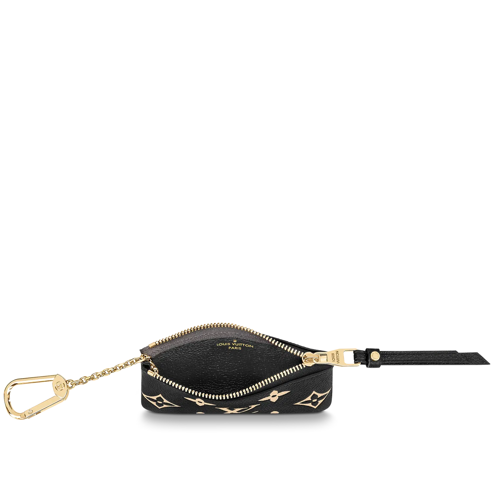 AUTO WIN-WIN A LOUIS VUITTON – Key PouchThis edition of the Key Pouch is crafted from two-colour Monogram Empreinte leather. With its secure zip closure, this elegant and practical accessory can hold keys and other small items, such as coins, cards or lipstick. It can be hooked onto a bag or belt, or the D-ring inside many Louis Vuitton bags.