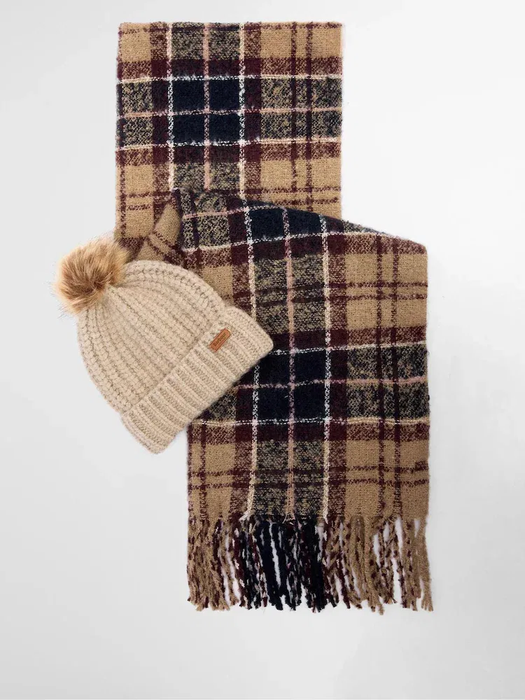 Barbour® Beige Saltburn Pom Beanie Hat & Scarf Gift Box Set-AUTO WIN 18/10