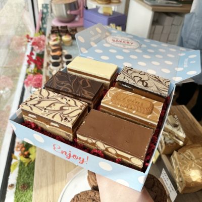 A mixed box of our Millionaires cookies 🙂 Cookie base topped with caramel and a topping – including Milkybar, Oreo, Bourbon biscuit, Biscoff, Kinder and Malteaser!