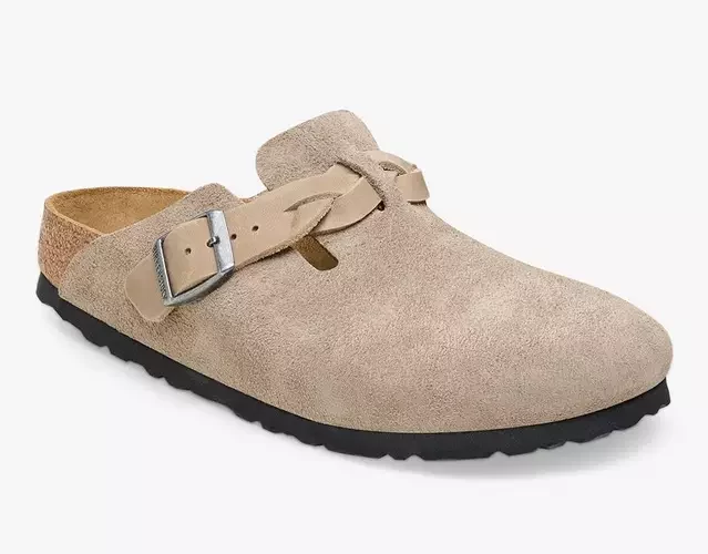 Birkenstock Braided Buckle Suede Clogs, Taupe-AUTO WIN
