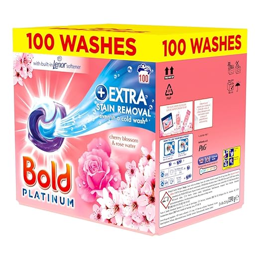 Bold Platinum Pods, Laundry Detergent, Washing Liquid Pods/Capsules, 100 Washes – Cherry Blossom & Rose Water – Extra Stain Removal Even In a Cold Wash-AUTO WIN 13/01