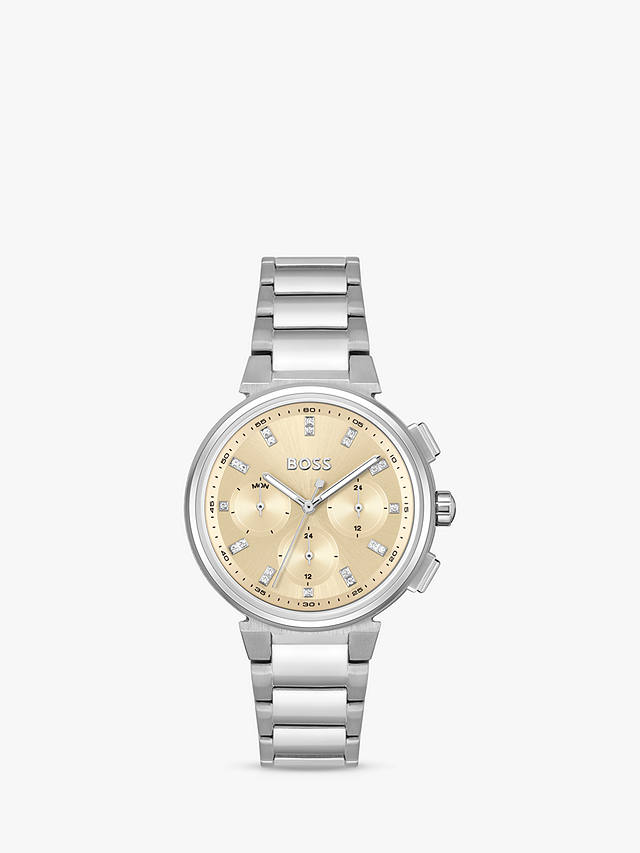 BOSS Women’s One Chronohraph Day Bracelet Strap Watch, Silver/Gold 1502676