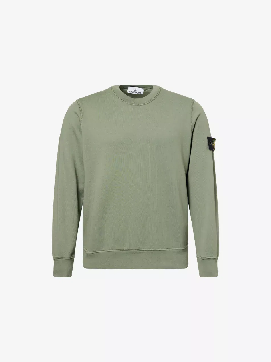 STONE ISLAND Brand-Patch Crew-Neck Relaxed-Fit Cotton-Jersey Sweatshirt-AUTO WIN