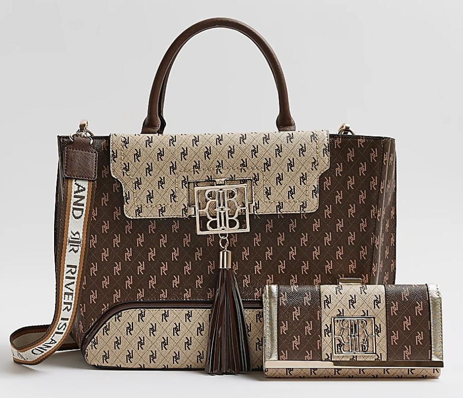 BROWN RI MONOGRAM TOTE BAG BUNDLE