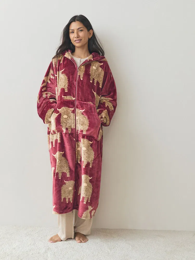 Burgundy Red Hamish The Highland Cow Oversized Hooded Blanket-AUTO WIN 24/03