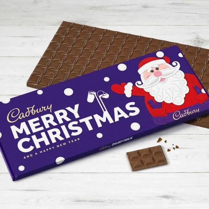 1 x Cadbury Dairy Milk Chocolate 850g Bar with Cadbury ‘MERRY CHRISTMAS’ Santa sleeve (Product Dimensions: 421mm x 170mm x 16mm)