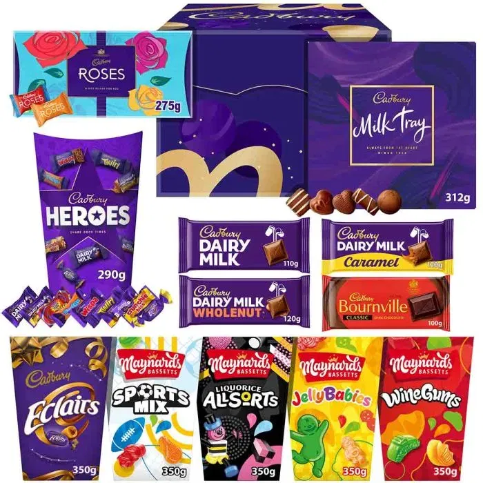 The Cadbury Deluxe chocolate box hamper is a choc-full of our most popular Cadbury chocolate gift products. The perfect hamper to give joy to all your loved ones to share. A Cadbury chocolate gift which is large enough to share and will suit all occasions