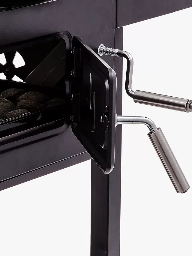 The fire pan has an external crank for individual height settings which allows for an ideal grill control.