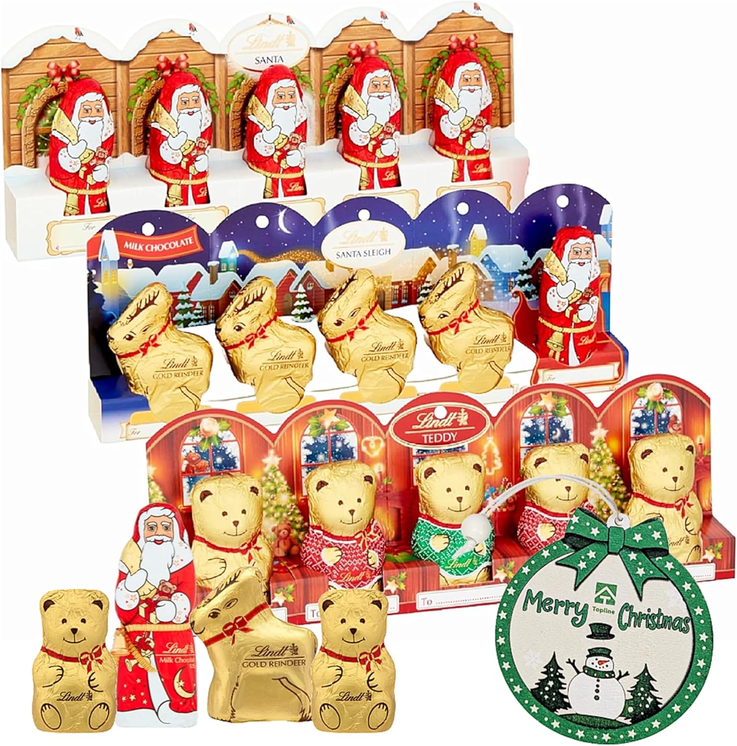 Christmas Lindt Chocolates for Stocking Fillers – Pack of 3 x 50g Santa Sleigh/Santa/Teddy Milk Chocolate with Topline Tree Ornament. Chocolate Gift for Kids Christmas Gifts, Xmas Tree Decoration AUTOWIN 30/11