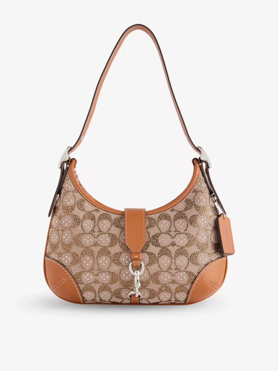 COACH Signature Hamptons Canvas And Faux-Crystal Hobo Shoulder Bag-AUTO WIN