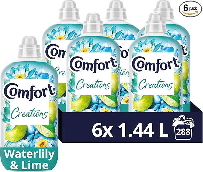 Comfort Creations Waterlily & Lime Fabric Conditioner with Stay Fresh technology for 100 days of freshness + fragrance* 6x 1.44 L (288 washes)-AUTO WIN 08/10