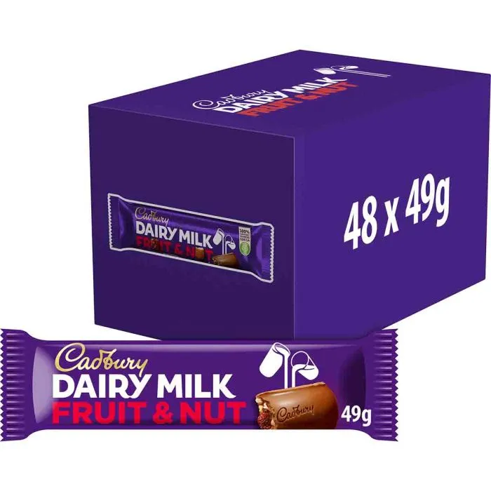 Dairy Milk Fruit & Nut Chocolate Bar 49g (Box of 48)-AUTO WIN