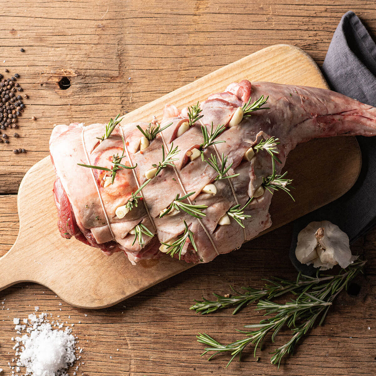 Please note, our easy carve leg of lamb does not come studded with garlic and rosemary.