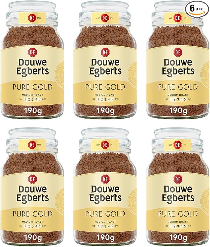 Douwe Egberts Pure Gold Medium Roast Instant Coffee 190g (Pack of 6 Jars, Total 1.14kg)-AUTO WIN 01/02