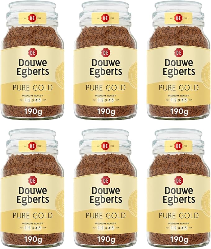 Douwe Egberts Pure Gold Medium Roast Instant Coffee 190g (Pack of 6 Jars, Total 1.14kg)-AUTO WIN 18/01