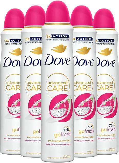 Dove Advanced Care Go Fresh Anti-Perspirant Aerosol Deodorant Spray for Women Dragonfruit & Coconut Cream, Pack of 5, 72 Hours Sweat Protection Pro-Ceramide Technology, 200 ml-AUTO WIN 28/09