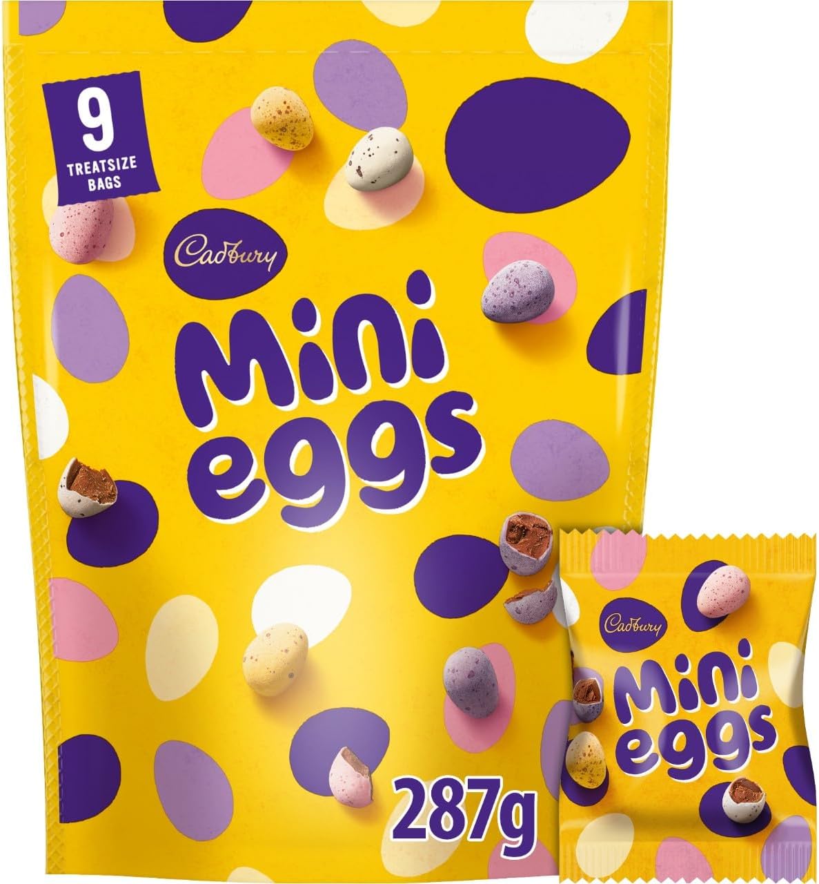 - Cadbury Mini Eggs Pouch, Easter Egg Hunts, Includes 9 Treatsize Bags, 287 g (Pack of 1)