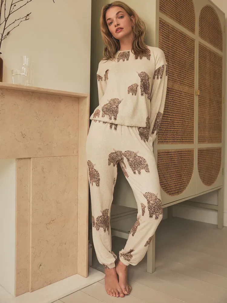 Ecru Hamish The Highland Cow Cosy Long Sleeve Pyjamas-AUTO WIN 30/09