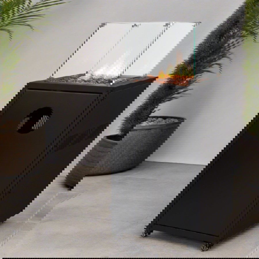 electriQ Glass Flame Gas Patio Heater With Glass Stones – Black-AUTO WIN 25/03