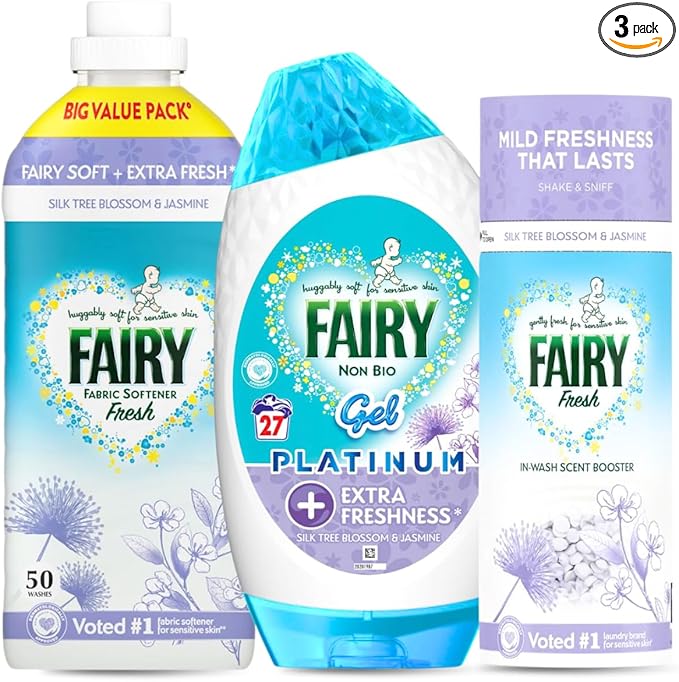 Fairy Non Bio Laundry Bundle 3pc – Silk Tree Blossom & Jasmine Fabric Conditioner, Platinum Gel & Scent Booster – Ultra Gentle, Long Lasting Freshness for Sensitive Skin Clothes Care-AUTO WIN 25/04