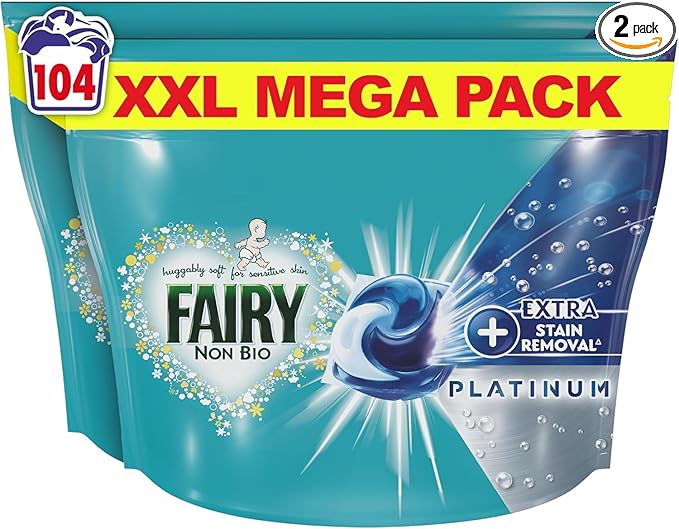 Fairy Non Bio Platinum PODS® Washing Liquid Capsules, 104 Washes (52×2), With Extra Stain Removal-AUTO WIN 26/04